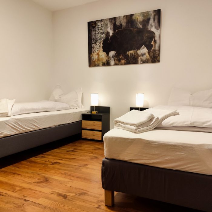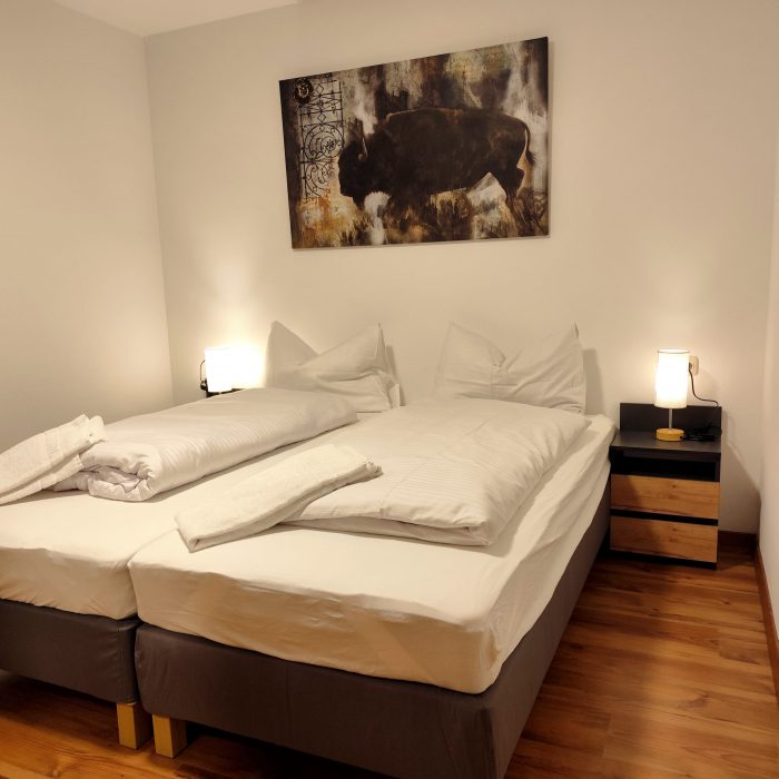 Die 2- Zimmer Wohnung für Langzeitaufenthalte befindet sich in der Georg-Lacher-Straße 2 und damit ganz in der Nähe, der anderen 5 Wohnungen. Sie ist im 1. Obergeschoss des Hauses in Günzburg und ist nach Südosten ausgerichtet. Die Wohnung ist voll möbliert und mit schönen Bildern geschmückt . Sie bietet insgesamt 2 Schlafmöglichkeiten in einem Schlafzimmer. Die Wohnung bietet schnelles Internet, Netflix, Magenta TV und einen Homeoffice – Arbeitsplatz.